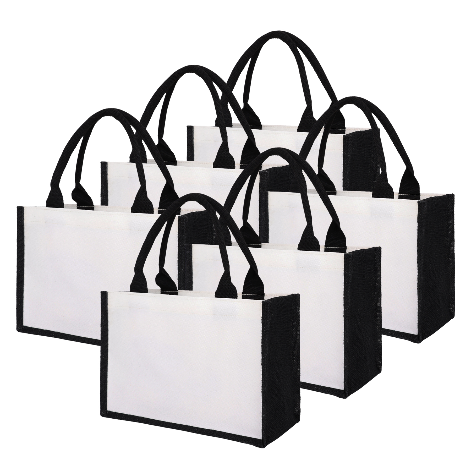 Toptie 6 Pack Canvas Jute Grocery Bags With Black Burlap Sides Beach Bag Fancy Activity Gift Bags Party Favors Walmart Com